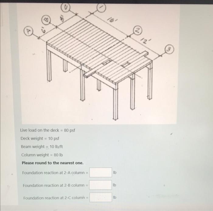 Solved マー Live load on the deck = 80 psf Deck weight = 10